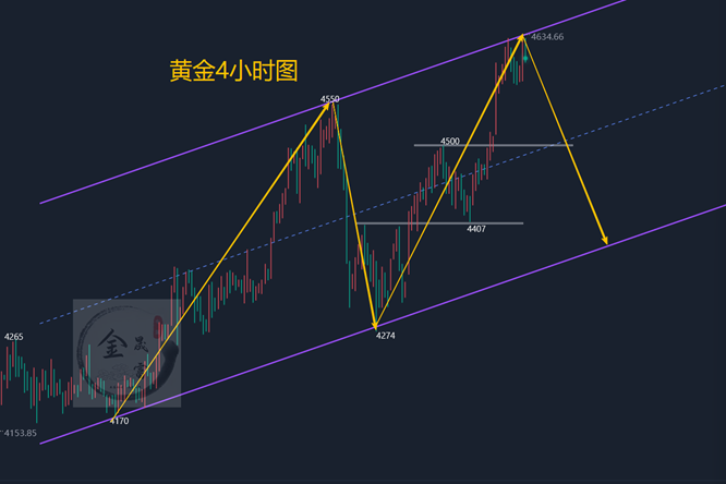昨天黄金尾盘走弱日线图最终收低,说明短线空头占据上风,今天回落的概率较大!4小时,随机指标死叉向下,偏空信号;MACD双线钝化状态,形态上横盘抗跌走势为主,形态上不是上升结束,上升只是过渡修正为主。短线上,昨天是小时图的死叉,一整天的以震代调,行情终归是被基本面推升。现在是四小时的将来的死叉情况,快慢线粘合,整体行情位于高位形成震荡。并且多日被斐波那契扩展线禁锢,确实可以考虑。同时亚盘开盘又出现了跳空高开的缺口,需要谨慎对待现在的走势,可能随时会走出调整空间,昨晚CPI数据利多,黄金再次走高至4634,但午夜又回落到4570,所以来回波段算是一个扫盘行情,既然是扫盘就要关注高低点的得失,向下关注4570是否破位,跌破后,空头反扑会有一波下跌至4520,并且这种可能性很大,预计在周三,周四会走出来。这波走势很可能会跟前期4550下跌到4270一样,走出150-200美金的下跌空间,那么,今天晟富还是要强调,黄金在多头趋势中注意调整的可能性。综合来看,今日黄金短线操作思路上金晟富建议反弹做空为主,回调做多为辅,上方短期重点关注4625-4635一线阻力,下方短期重点关注4520-4500一线支撑,各位朋友一定要跟上节奏。要控制好仓位及止损问题、严格设止损,切勿抗单操作。具体点位以盘中实时为主,欢迎前来体验,交流实时行情,进群关注实时单。