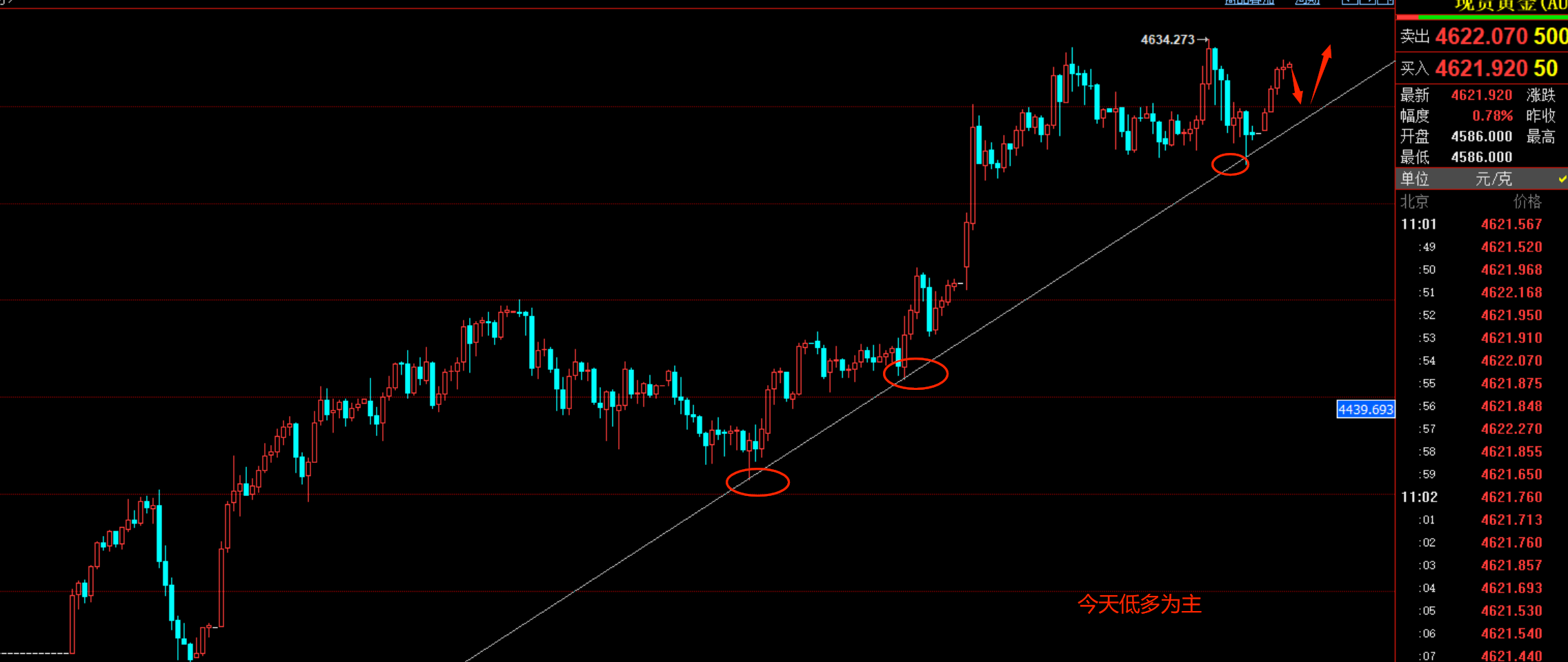 昨日全网公开高抛低吸的思路,并且给到先涨后跌再涨的思路,精准预测,昨天晚间实盘4622附近空,4632止损,4628空,4617止盈,4623继续空,4606止盈,底部4596多,4613止盈,今天黄金依然主多。