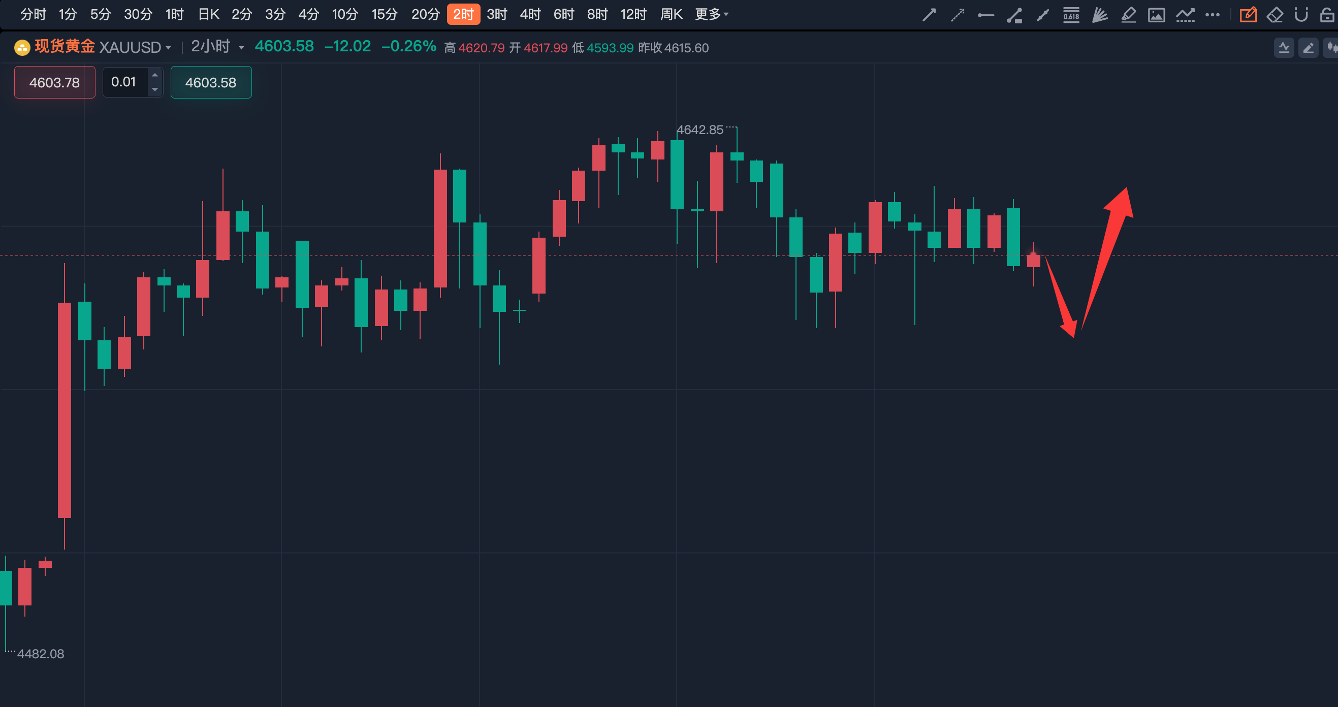 美国最新公布的初请失业金人数(19.8万)大幅优于预期,显示就业市场强劲。这强化了市场对美联储将“在更长时间内维持高利率”的预期,推动美元升至一个多月高位,对以美元计价的黄金构成压力;美国总统特朗普对伊朗局势的表态转向“观望”,暗示可能暂停军shi行动。这使得由地缘政治风险带来的避险买盘有所降温;技术面来看,昨日黄金整体呈现先跌后涨再跌的走势,多次下跌未跌破4580支撑,说明黄金下方支撑稳固,并且低点不断上移,黄金继续看涨,黄金继续关注4580的支撑,日内建议低多操作。