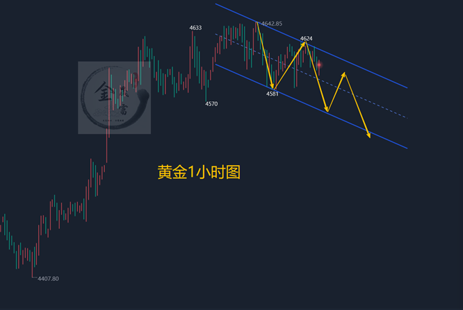 4小时级别走势偏震荡偏弱,目前有形成双顶形态雏形的迹象,4570一线附近成为关键颈线位,该位置的得失直接影响中期走势;技术指标上,MACD双线已发出死叉变盘信号并持续向下运行,空头力量逐步增强,KDJ指标也在高位形成死叉后向下发散,短期调整信号十分明确;布林带方面已跌破中轨支撑,正逐步向4570一线的下轨位置靠近,若后续跌破下轨,布林带形态将开口向下,进一步放大调整空间。1小时级别呈现震荡下行态势,价格跌破小时线布林带中轨后,短期偏空格局确立,且短期均线相互缠绕形成压制,价格反弹动能不足,多次反弹均遇阻回落。综合来看,今日黄金短线操作思路上金晟富建议反弹做空为主,回调做多为辅,上方短期重点关注4625-4630一线阻力,下方短期重点关注4520-4500一线支撑,各位朋友一定要跟上节奏。要控制好仓位及止损问题、严格设止损,切勿抗单操作。具体点位以盘中实时为主,欢迎前来体验,交流实时行情,进群关注实时单。