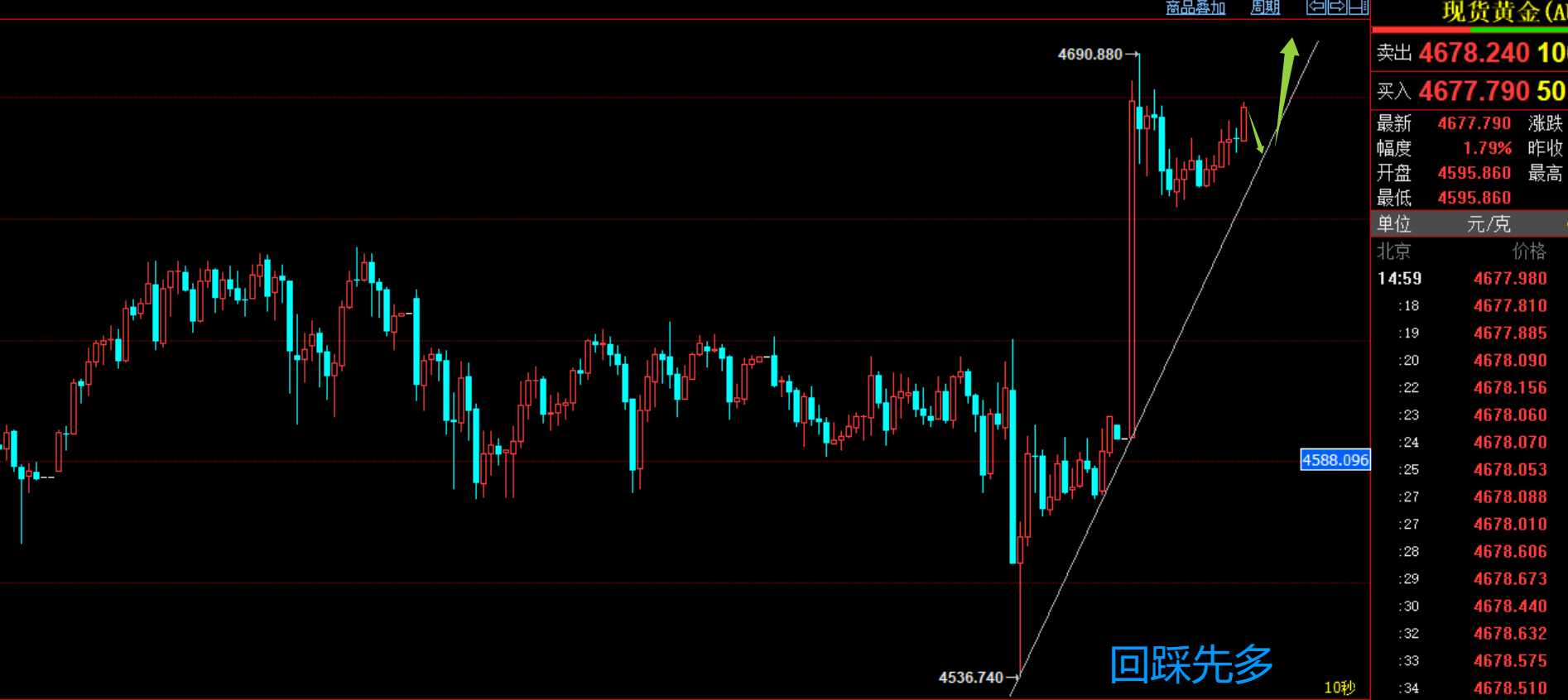 4573多再赚100美金把波段利润,上周周五黄金来回震荡,多空都有利润,博文提示大家破位4580空,最低跌至4537,随后尾盘V反转,实盘4573果断多,今天早盘黄金高开高走,实盘4675止盈,中间没有减仓,一波拿到底,短期半月时间,再次拿下100美金的波段利润,2026年,12次拿下100美金波段利润,中间多次拿下200美金以上利润,并且没有任何减仓,一波到底,今天黄金回踩先多。
