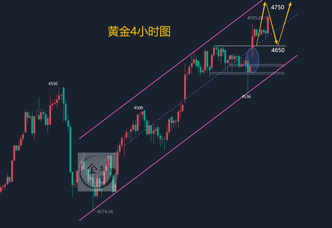 小时线整体依旧保持着强势的形态,那么欧盘二次看涨的位置可以关注一下前期高点4690一线,若给到机会直接跟进多单,黄金1小时均线还是金叉向上的多头排列,黄金昨天横盘之后基本上企稳在4690上方,那么黄金短线在4690上方基本上已经企稳,今天欧盘回落4690上方继续逢低多,黄金蓄势之后大概率还是将继续上涨,目前黄金牛市格局没有改变,看欧盘延续上涨空间,现在不要去盲目猜顶至少等价格失守4650才可以确定有一定的回调动作,当下全线共振多头信号,日内不不追高若回踩4690压制支撑转换处可视为二次多头良机买入!综合来看,今日黄金短线操作思路上金晟富建议回调做多为主,反弹做空为辅,上方短期重点关注4750-4780一线阻力,下方短期重点关注4690-4700一线支撑,各位朋友一定要跟上节奏。要控制好仓位及止损问题、严格设止损,切勿抗单操作。具体点位以盘中实时为主,欢迎前来体验,交流实时行情,进群关注实时单。