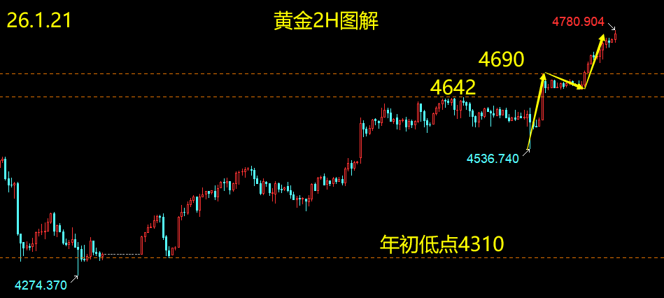 黄金,年初价格自4310受地缘危机避险提振上行,周初因关税刺激快速走高;文中强调后市在4642平行攻防之上看强;周二实际已站上4700,早间冲高4781;日图连阳,K线组合呈多头排列,虽技术面指标超买,但市场避险买盘强势,宜维持看涨思路,直至出现抛售性转折;