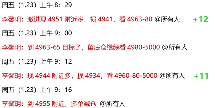 1.21 周三,公开策略继续看涨黄金,已接近之前强调的4900中期目标!实盘中,早间先安排的4800短空,扫损4805;而后安排的4815顺势多单,顺利到4878获利!欧盘前下探,公开安排了4842-40多单,持有至晚间到达4880目标!日内两连多,再抓波段利润,斩获96点!公开现价单,全网见证!