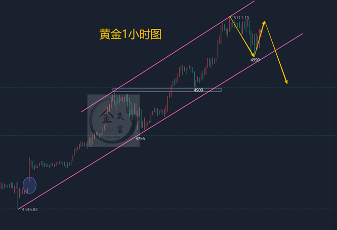 短期开始赶顶了,无论多头还是空头都会很疯狂,风控显得尤为重要。昨天说,受消息影响短期内快速拉升,近期必有大幅度下跌,并且单日下跌极大可能会再次突破去年300美元的记录;所以,大家重点关注多空转折点关键位。多头一鼓作气,再而衰,三而竭;多头持续不能停,一旦停下,空头将反扑。现在多头有一定机会获利了结。4小时图macd没有放量早早顶部背离,昨天1小时完成下修释放!4小时正在下跌后的反弹修复、下跌一旦走出将是非常不错的大跌甚至有望击穿4990美元!同时结合日内空头防线,是在5110附近守这个位置看下去,先看4990跌破之后估计会有加速!4990这个位置稳住也有可能会暂时宽幅,总之今天就是看好日内空头!除非欧盘市场站上了5110美元我才会认怂!但多头也不见得会大涨!更多的是一种宽幅趋势,要小心空头来袭!综合来看,今日黄金短线操作思路上金晟富建议反弹做空为主,回调做多为辅,上方短期重点关注5100-5110一线阻力,下方短期重点关注4990-5000一线支撑,各位朋友一定要跟上节奏。要控制好仓位及止损问题、严格设止损,切勿抗单操作。具体点位以盘中实时为主,欢迎前来体验,交流实时行情,进群关注实时单。