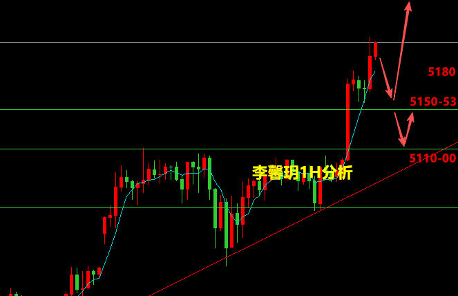 操作建议:黄金5150-53附近多,损5143,看5190、5230-50!白盘极强则关注5180支撑先多!