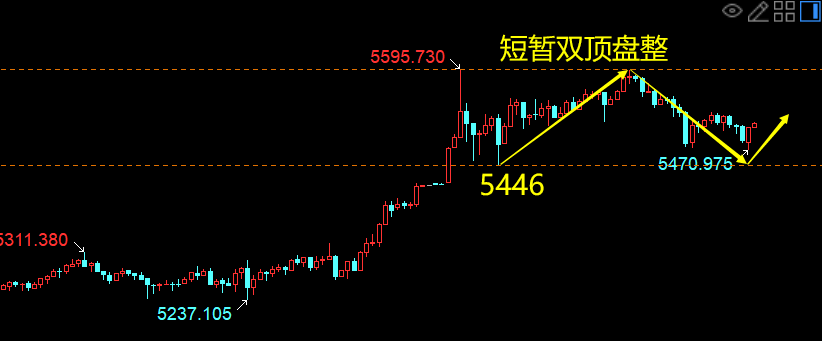 策略一:5470附近买入,保护5450,目标5596;