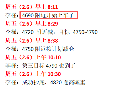 2月4日周三黄金多空精准收割!欧盘实战先是在5070干空,隔夜最低触及4850附近。李槿尾盘前公开策略4850多,黄金精准触及开始反弹,隔夜直接来到了5000上方。欧盘就有提示,黄金可能走出一波低点,倒车接人。关注到李槿的文章自行跟上的朋友又是收获满满的一天。