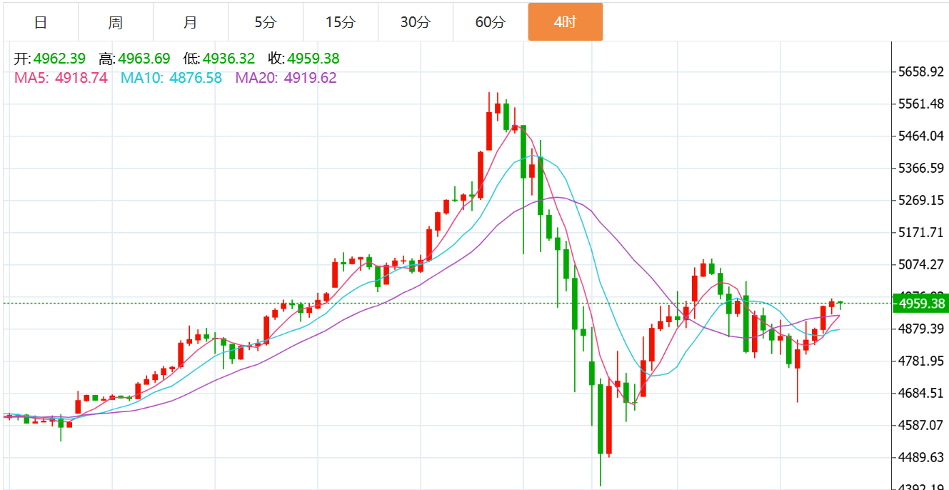 黄金技术面分析:当前盘面来看,黄金昨日开盘后即延续一波走跌调整,跌至4655一线附近,随后行情持续回弹,午间时段在4850有停留,但太过短暂,午后即再拉升,测压至4900上方,不过其后行情又回落至4830附近,欧盘时段行情整体围绕在4830-4900之间持续震荡,虽多头略显强势,但面对5000压力,也还是有承压受阻表现的。回顾日内黄金走势,点位方面与早间预期相符,但是趋势节奏的表现却要强于预期,尤其是目前站在5、20日线4850-70之上,这对短线行情也是一个很大的考验,技术上并不期待今日行情站上5、20日线,否则昨日的下跌影响力将会大打折扣,但如果今日对5、20日线仅仅只是刺破,今晚能够回到其下的话,那么黄金主趋势依旧是有看调整回落的条件的。虽然日内黄金相对偏强,但以小时图结构来看,日内的爬升也显现疲态,所以晚间主线思路还是看承压修整回落为宜,只是受今日偏强回升的影响,今晚即便再有回落,空间也会收到局限,所以晚间黄金可看区间震荡运行。晚间操作上保守者可继续暂观,激进则还是侧重于择高短空尝试,即可继续参考5000附近空,若日内已有此位空单的也继续保留,统一带5020上方手动止损,目标需要略作调整,下方可先看4860-50先改保本止损,回撤4830、4800再做减仓,剩余持单则留有看4750附近回撤预期。综合来看,黄金下周短线操作思路上贺博生建议以回踩低多为主,反弹高空为辅,上方短期重点关注5010-5060一线阻力,下方短期重点关注4920-4870一线支撑。