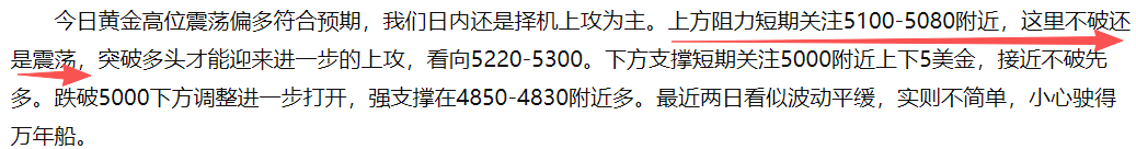 1月26日周一晚间公开给出先空后多思路,明确给出关注5110附近压制空,有效跌破5050,看向5000甚至4980再去分批多,黄金深夜回落,多空走势精准符合预期。
