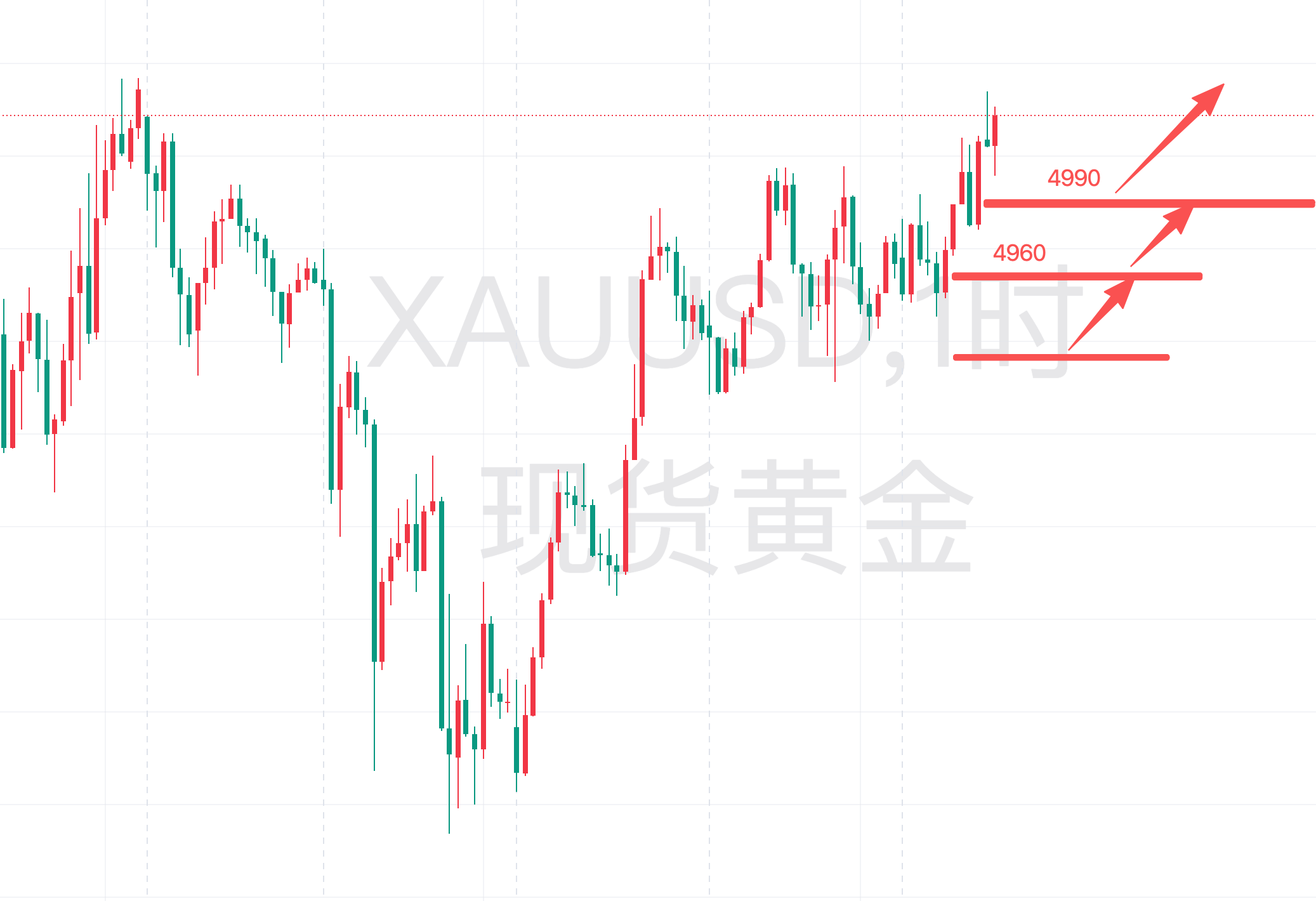 对于持仓者而言,手上持有多单的可继续安心持有;尚未建仓的投资者,若金价回落至 4990 - 4960 区域,甚至 4940 附近,都可分批进场做多。我们的短期目标依旧不变,先看向 5100 - 5050 区间。