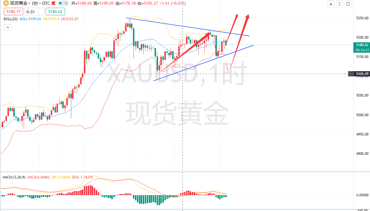 伊朗局势升温,沙特威胁增产,特朗普称关税继续、黄金维持横盘震荡,追高意愿逐渐趋于谨慎;技术上,整体仍是偏多看上行趋势,短期关键分水岭还是重点关注5100(再次下破就会延续跌势)日K收线长上影线小阳烛体,上方短期压制还是关注5250破位短期至少能看到5300;日内操作节奏上就保持低多看涨,虽然短期位置偏中性但是多头仍占据优势,参与上就围绕5100之上灵活点分批去看涨,一到5230-50高位敏感区域逢高减仓即可。