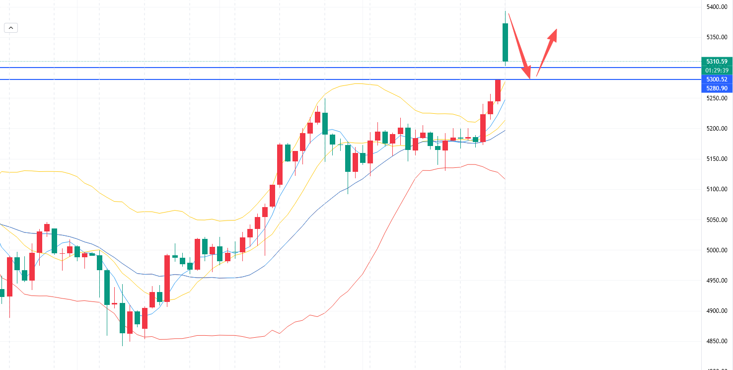 回落5300-5280区域分批轻仓多