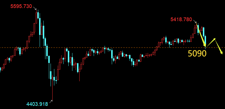 日内价格实际承压5380,欧盘下破周一低点5260,19点收线4H图呈空头排列,晚间需调整思路;短线阻力5200-5220,强阻5260;短线支撑5090,强支撑5060,破位下看5000;