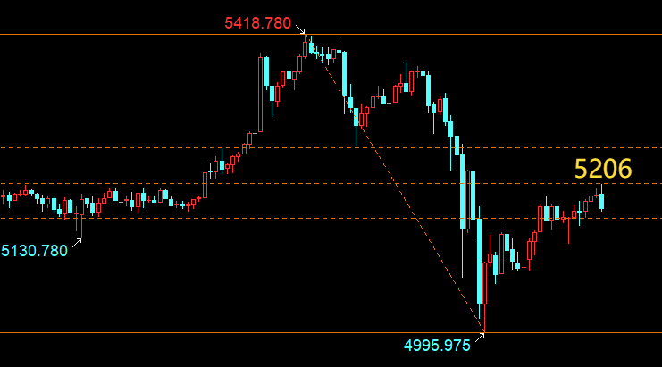 日内实际反弹5206,现报5160,晚间延续看跌;短线阻力5180-5200,强阻5220;短线支撑5150-5130,强支撑5100,破位下看日图中轨5060及周二低点5000;