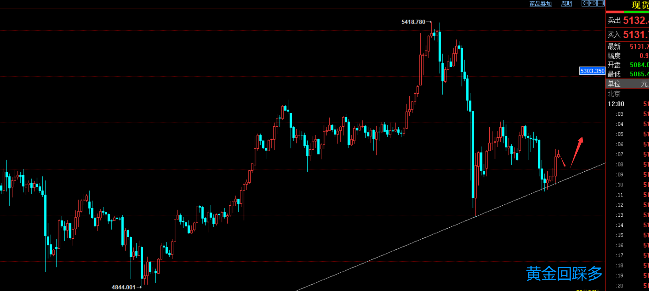 黄金昨天到晚间大跌,昨天博文强调,黄金还没有到抄底的时候,依然存在下跌调整的趋势,昨天最低跌至5053,尾盘来回震荡,到今天早盘黄金再次大涨,短期来看,黄金偏震荡,白盘黄金回踩可以继续做多,破位5050则再反弹做空,下方关注5080的支撑位。