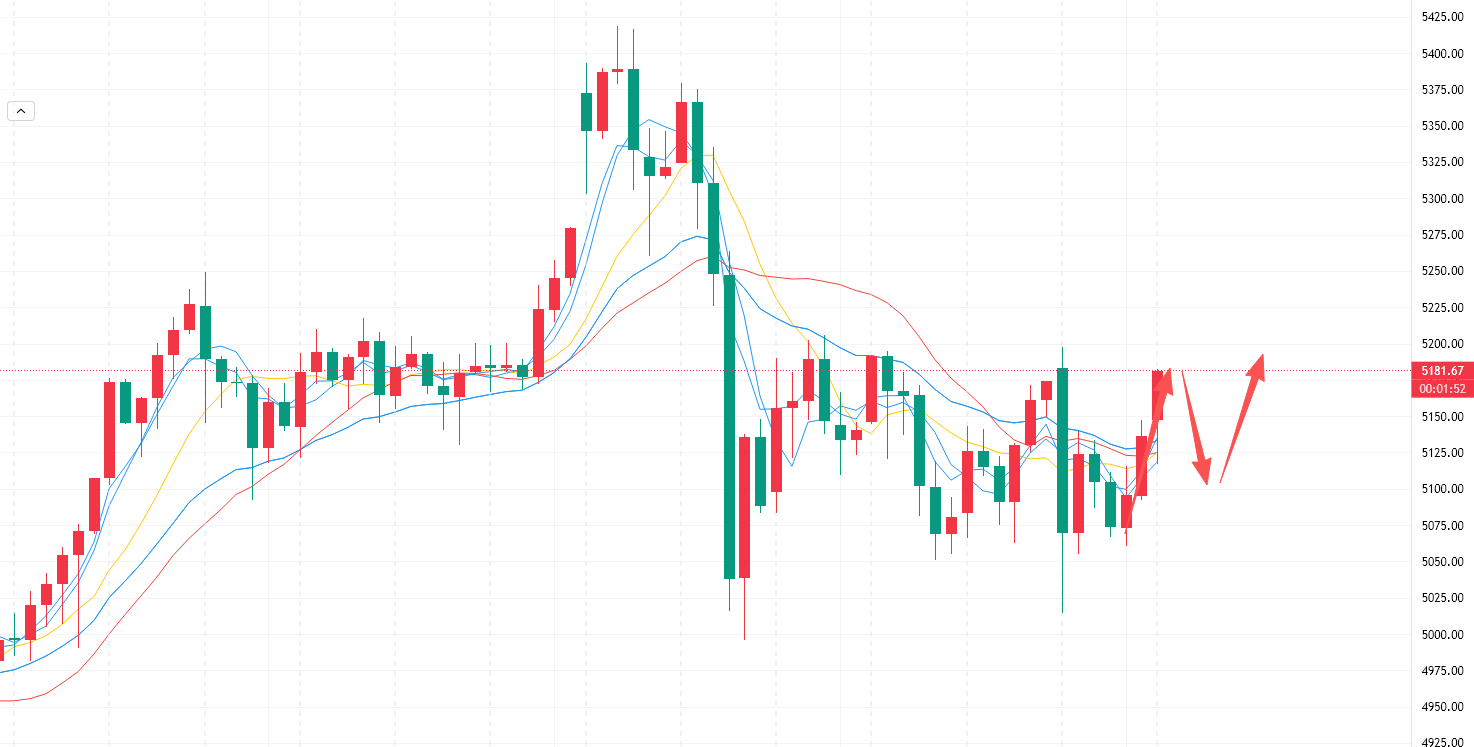 下方支撑短期关注5100附近,接近可以轻仓多。假设继续震荡洗盘,关注5050附近强支撑,见到也是做多的位置。上方压制还是重点关注5200,久攻不破,有些麻烦。突破的话上方可以看向5245,甚至5300。