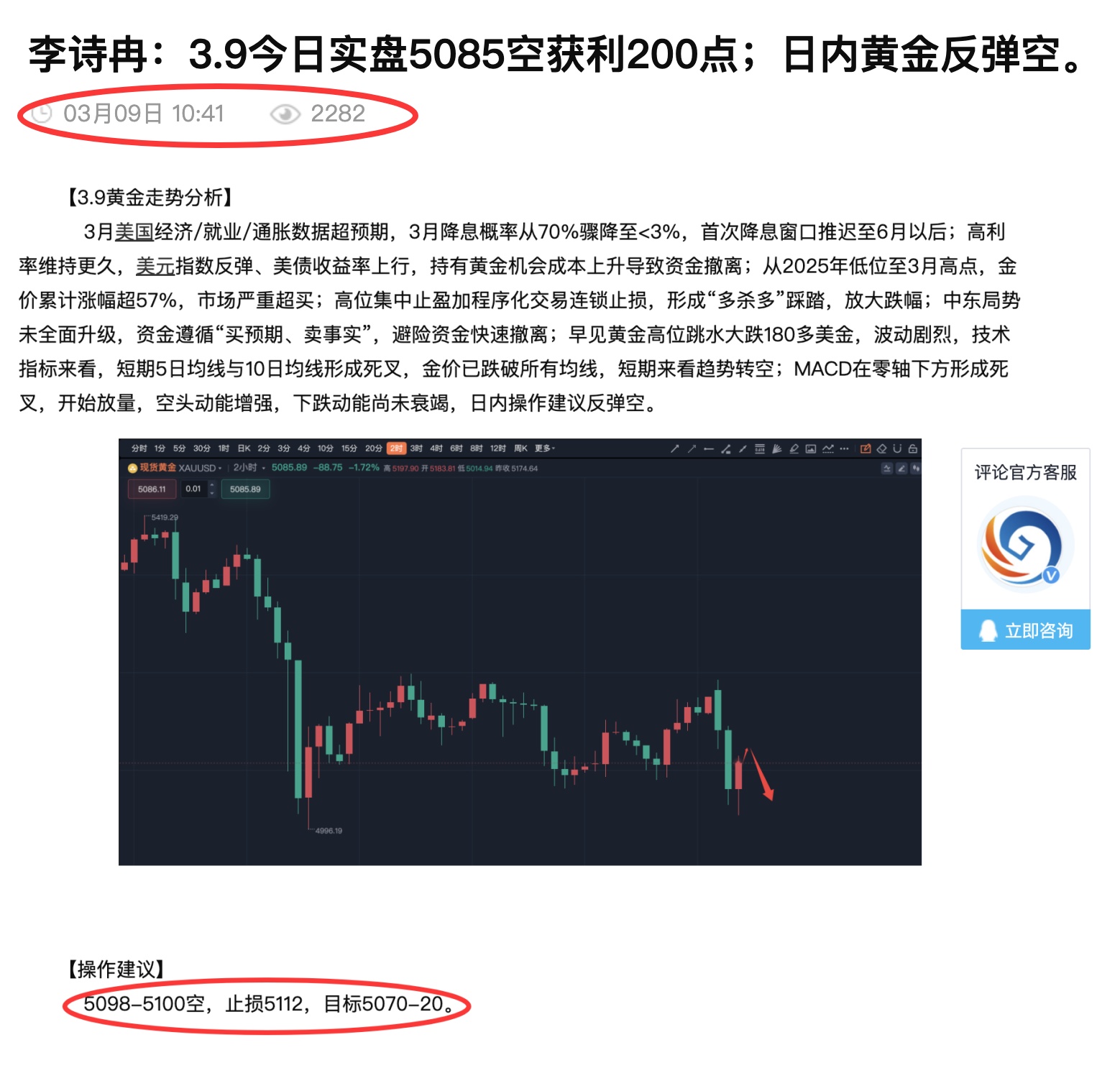 周一实盘两单止盈1单;早间实盘在5085提示空,下跌至5065提示离场,这单获利200点;午后黄金反弹上来实盘在5115空,最终在5127止损离场;昨日早间公开空单策略精准,黄金如期涨至策略给的区间下跌;跟上的朋友再次博得丰厚利润;关注诗冉不迷路,专业不浮夸、风控不松懈,用真实换信任;发文给策略次数有限,需要获取更及时的策略请前往主页获取诗冉老师联系方式即可,选择大于努力。