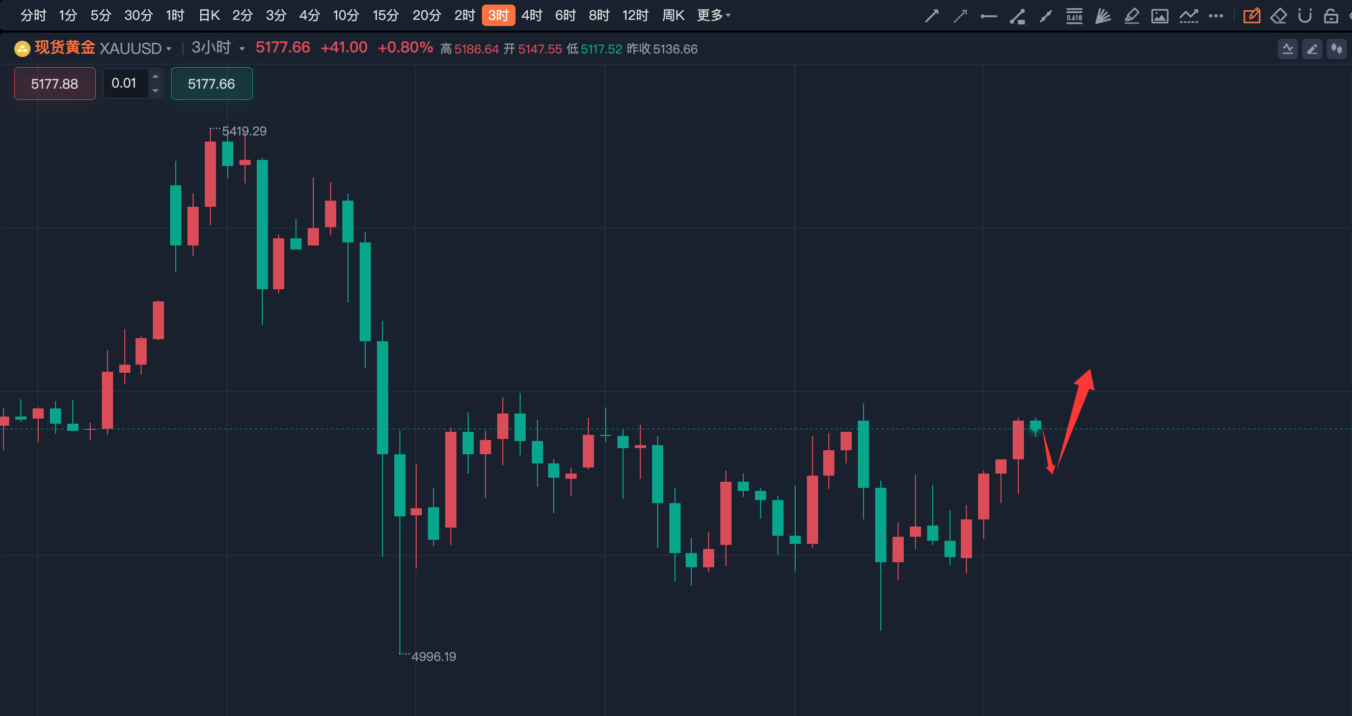 3月17–18日议息维持利率不变已成共识;市场降息预期大幅降温,7月降息概率降至67%,全年降息预期仅38bp;高利率持续压制黄金持有吸引力。明日(3月11日)美国2月CPI为关键拐点,若通胀超预期,降息再降温将利空黄金,若通胀弱于预期,降息预期回升将利好黄金;美元指数冲高99.50后回落,缓解金价压制,10年期美债收益率高位震荡(约4.16%),实际利率仍高。中东局势紧张,霍尔木兹海峡航运风险未消,避险需求托底,全球央行持续购金(中国央行连续16个月增持),成长期底部支撑。技术面来看,今日早间黄金开盘下跌30美金后拉伸近70美金,可见多头势力很猛,3小时金价站稳5日、10日、20日均线上方,均线新形成金叉,短期趋势偏多,MACD金叉持续放量,多头动能在逐步增强,黄金目前短期处于多头趋势启动阶段,操作上建议回踩支撑位做多为主,下方关注5130的支撑位。
