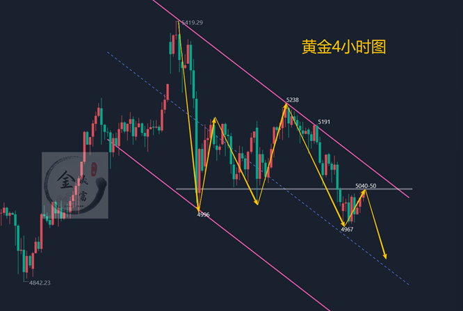 当前盘面来看,震荡慢跌格局特征明确。日线级别,金价处于空头排列,MACD指标维持死叉形态但绿柱温和放大,空头动能逐步释放而非集中爆发。4小时级别,布林带窄幅运行,金价围绕中轨下方震荡,RSI指标在40-50区间波动,未进入超卖区间,反弹力度微弱且持续性差。上方阻力集中在5040附近,震荡区间逐步下移。整体而言,震荡慢跌态势仍将延续,需重点关注美联储议息会议动向。今早开盘,黄金价格维持在5000关口上方,短线走势上明显转弱,同时金价运行在主要短期均线下方,动能指标也出现回落迹象,表明短期空头仍占据主导。所以今天早盘考虑反弹在5040-50一线继续做空,看能否破位关键支撑下跌!但若先行跌至4970一线支撑有效,也可短多!综合来看,今日黄金短线操作思路上金晟富建议反弹做空为主,回调做多为辅,上方短期重点关注5050-5060一线阻力,下方短期重点关注4900-4850一线支撑,各位朋友一定要跟上节奏。要控制好仓位及止损问题、严格设止损,切勿抗单操作。具体点位以盘中实时为主,欢迎前来体验,交流实时行情,进群关注实时单。