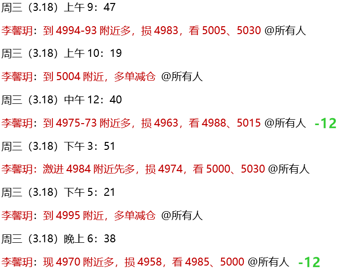 3.17 周二,公开策略黄金4995-92、4975做多,全部完美把握回踩低点,如期拉升!全网公开见证,恭喜关注跟上的朋友,又是两波预测内利润到手!实盘中,午间黄金向上拉升,实则虚破后回落,方向误判出现了连续止损单。但好在晚间按策略安排的4994-92多单,到达5030-32目标止盈!而后按策略4975下方多单也如期进场,隔夜顺利到5005获利,扳回一城!
