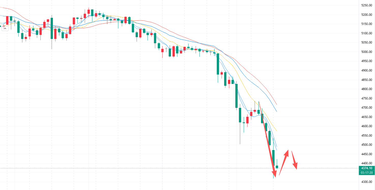 技术面来看,早盘黄金直接破位4350下行,也就是前期的起涨点,超卖但没企稳信号。反弹更像是跌累了歇口气,暂时没看到反转信号。上方跳空缺口和短期均线都形成压制,下方还有试探低点的风险。
