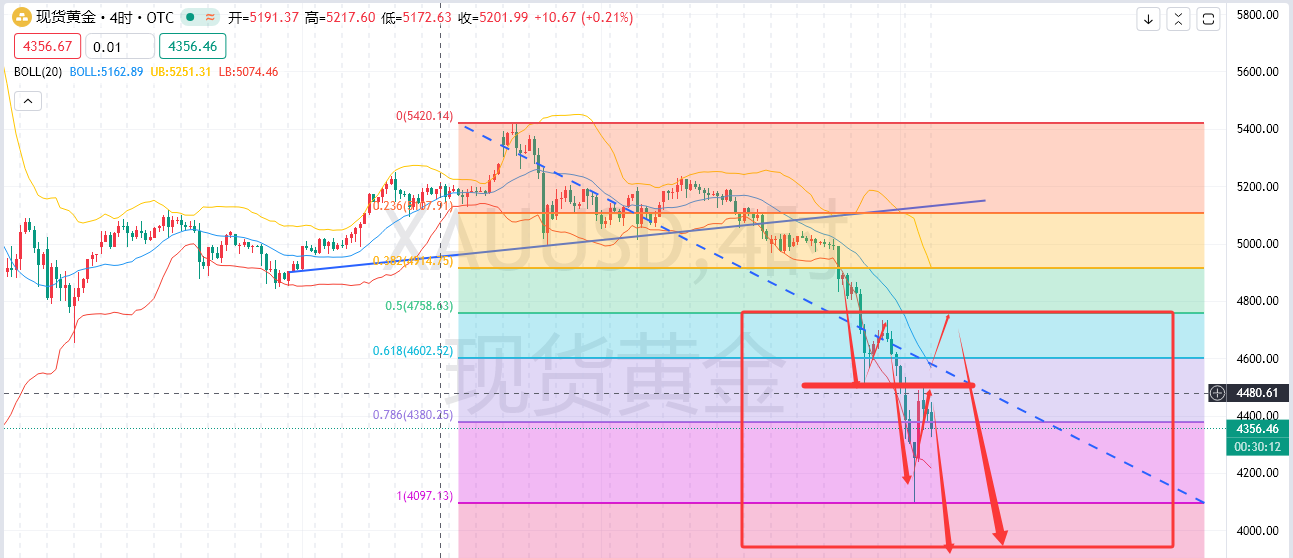技术上,价格围绕低位继续震荡,短期对于跌势有一定的局限放缓,空头更不能采取较为激进思路,整体更像是时间换空间的走法,下方短期支撑4330-4320关口,重点支撑关注4100,下方出现企稳信号,不排除短期内北上延续放量可能性,但梦圆不建议提前预期4100作为中长期底部看待,有点过于提前了,最多就是陷入宽幅震荡格局,切勿激进追涨杀跌,谨记这一点即可。昨晚4500附近的空单4400有100个点空间,尾仓大家推个4500保本损即可,随着时间的推移短期重点压制会逐步确认给到4500关口,突破则有望快速朝着4600-4700去测试,甚至4800,如若突破4500后回踩确认顶底转换情况可以北上短线继续跟随,但是核心思路短期任何的反弹都是为后期下破4100做准备,主空辅多思路仍然不变,4500不破的情况下还是守弱状态,日内依托4500止损,参考位置上建议是4480-90空,下方横的越久大概率4450也难以再次收复,但是有着高位空就没必要过于激进了,短期压制4450-4500,空仓的朋友4450-90区域也不是不可以去,激进情况下轻仓即可,灵活把控仓位依托4500下方空就行了,目标4330减仓破位看4200-4100-4000(甚至更低)梦圆一直都是以趋势方向为主,喜欢做震荡的朋友关注提及的短期支撑自行把控来回,多单就不过多阐述了。