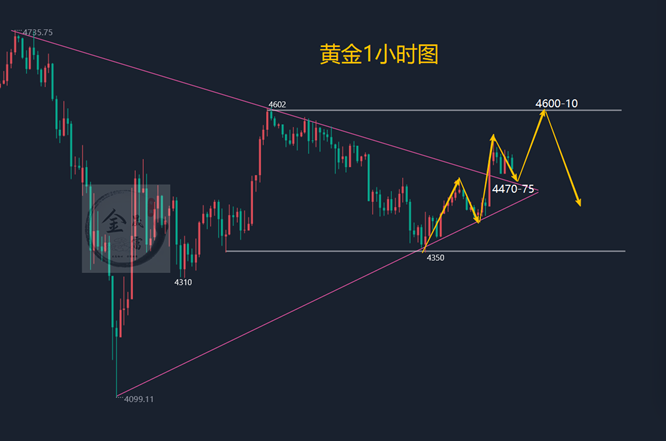 1小时来看还是在大区间震荡,黄金仍然还是震荡行情,暂时还没有形成反转,如果黄金下周能够企稳在4470上方,那么黄金才能有望转强,最近消息比较频繁,耐心等待周末消息,看周一开盘如果黄金能够在4470上企稳上行,那么多头才有望发力。1小时短期还是震荡上行的节奏,短线回落还是收稳4496一线,那么如果没有大利空消息还是有望震荡上行,具体还是等待看周末是否有什么消息会让黄金坚守住1小时的震荡上行的节奏。对于支撑先留意4470,之上看多头二次冲击4600关口,反之则重点关注4400,届时虽陷入震荡的概率较大,但在关键防守有效的情况下,依然可期震荡中的多头表现。至于阻力重点关注4600可以空,若下周多头不能实现上破,那么进入4月份后,金价继续调整的可能性会加剧。综合来看,下周一黄金短线操作思路上金晟富建议反弹做空为主,回调做多为辅,上方短期重点关注4580-4600阻力,下方短期重点关注4470-4400一线支撑,各位朋友一定要跟上节奏。要控制好仓位及止损问题、严格设止损,切勿抗单操作。具体点位以盘中实时为主,欢迎前来体验,交流实时行情,进群关注实时单。