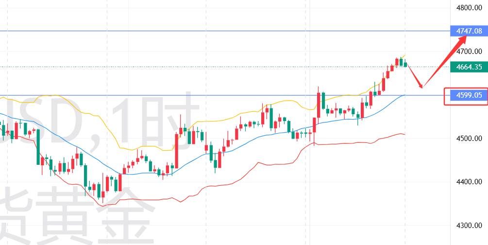 综合来看,短期阻力处于4700整数关口压力;下方4640是第一支撑,其次是4600前期压制位,日内操作建议:回调4640–4630企稳做多,止损4600下方,目标上看4688–4700;上方首次触及4700附近轻仓短空,止损4720,目标下看4660–4640区间。