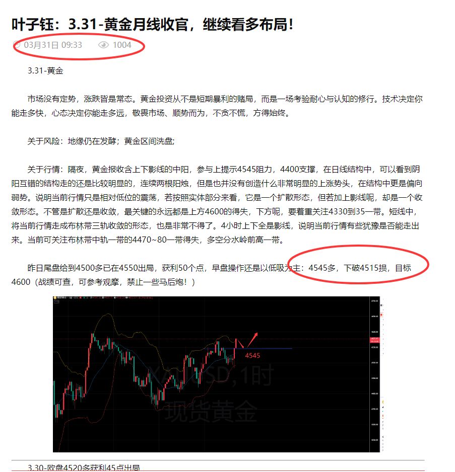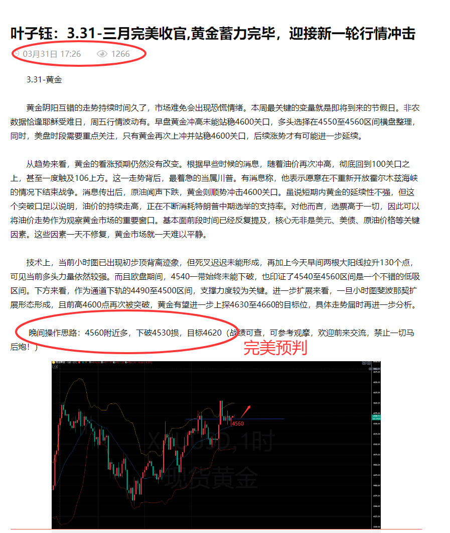 一季落幕,新程开启。金价回调只是蓄力,并非转势;交易不靠预判搏杀,全凭风控与耐心。稳住节奏,守住本金,顺应多头主线,静待后市新一轮突破来袭。