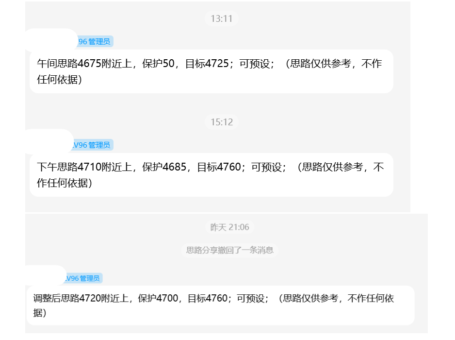操作上,我们周内4525-4550-4560-4675-4710-4720单向主多连胜,日内计划4720之上主多,有变化盘中提示;