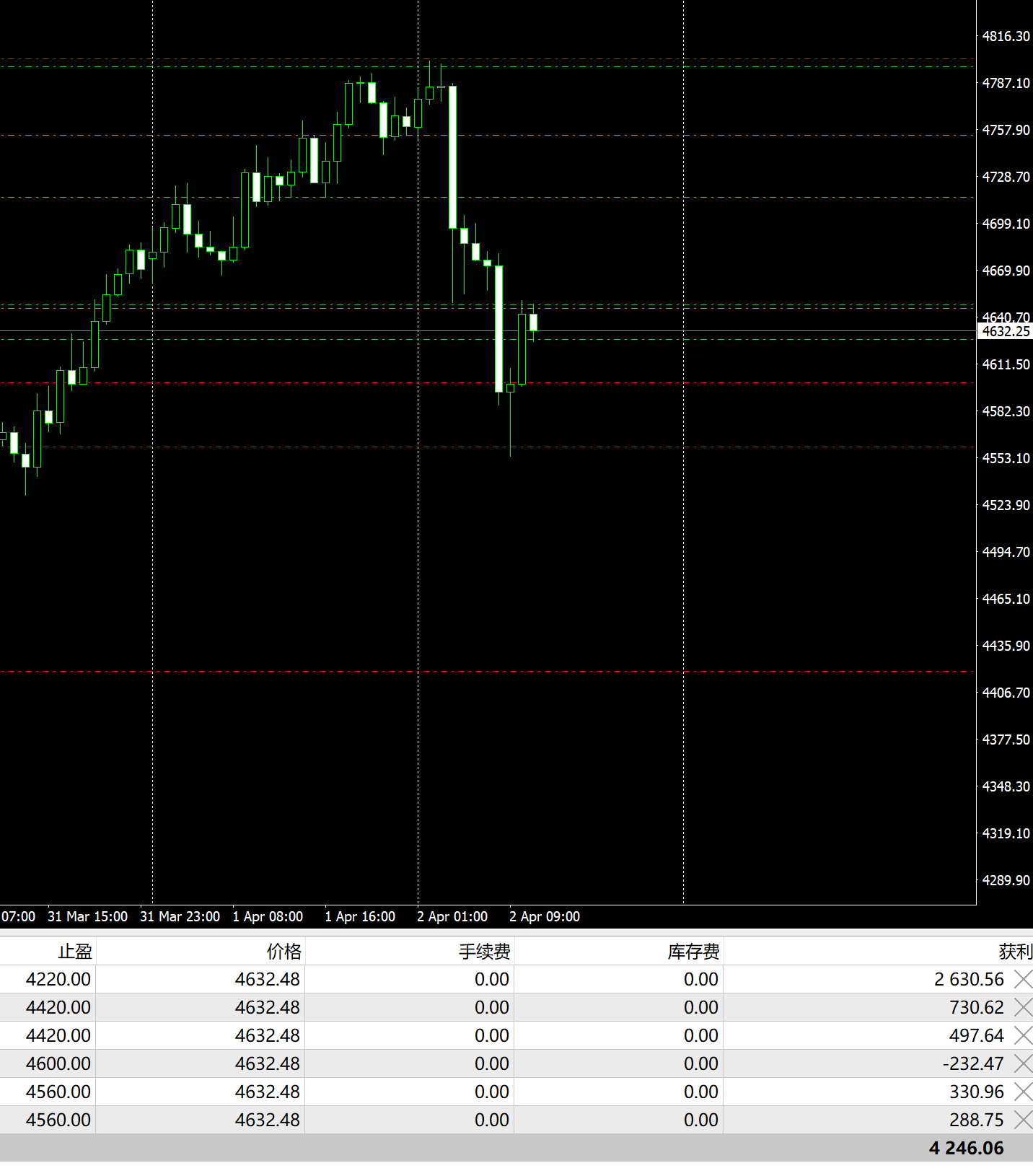 支撑位:4650美元附近,今日低点区域;4570-4600美元区域,为4月主要运行区间下沿;若跌破则看4350-4400美元区域