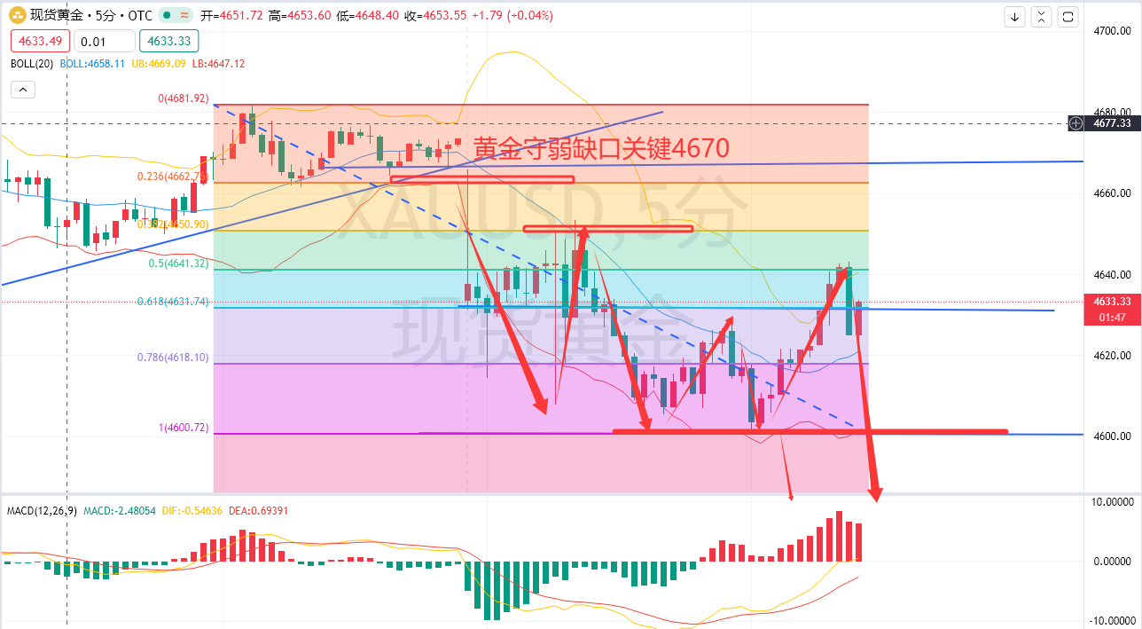 技术上,非农如期利空,技术上没太多要说的,反弹空即可;随着时间推移,日内关键分水岭且先关注4670得失再说,以下都是皆空机会,4640空(已经,可实盘验证),50-52补上破4670损,4600破位的话补空追空,目标4550-4500即可,下方低多短线机会关注一下4500-20区域,短期整体结构震荡偏空,主空辅多配合进行即可!咋们有高空情况下,就没必要低多了,关键支撑位置减仓即可。