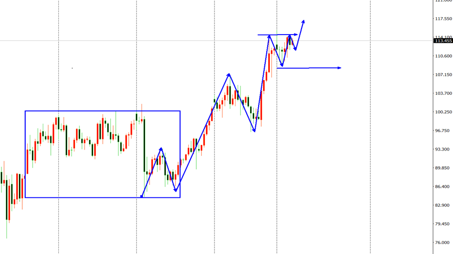 美原油市场昨日开盘在112.92美元/桶,后行情先拉升,日线最高触及到了115.62美元/桶,后承压回落,日线最低给到了108.97美元/桶,后整理,日线最终收线在了112.6美元/桶,后日线以一根下影线长于上影线的十字星形态收线,而这样的形态收尾后,原油延续看涨思路。综合来看,高博景总结:原油多头持续发散,当前在高位调整中,关注区间突破情况,今日操作上考虑回撤布局多单为先,高空为辅,上方关注115.8-120.0美元阻力,下方关注110.8-108.0美元支撑。