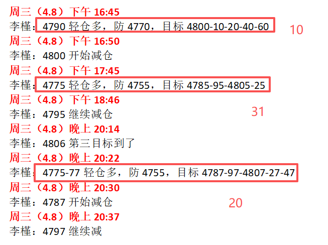 4月1日周三晚间公开给出的4800如期到达,日内关键压力区反弹做空拿下双胜!