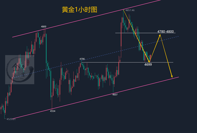 黄金目前在日线走势上的反弹延续度走的并不是太好,目前价格暂时在4700一带得到支撑。日线走势上短周期均线开始由前期的向上发散逐步转为向下发散,日线走势上可能会继续维持个宽幅的区间震荡走势,短期关注下4600-10附近的支撑带。小时级别走势上在连续的低位震荡之后技术形态开始逐步调整,短周期均线开始逐步勾头向上发散,在短线走势上可能会有一些反弹的空间,短线上方关注4780-4800一线的阻力压制,如果不能重新站稳4800一线,那么多头可能就会在这个位置1小时的反弹构筑头肩顶的形态,下方关注4600一线的支撑,黄金短线在没有明确的停火之前可能很难大涨上行,如果冲突进一步升级,黄金可能还将继续下破4600一线。即使临时停火,大概率最终还是很难直接结束战火,早盘反弹关注4800一线的阻力压制,反弹先高空。综合来看,今日黄金短线操作思路上金晟富建议反弹做空为主,回调做多为辅,上方短期重点关注4780-4800阻力,下方短期重点关注4700-4650一线支撑,各位朋友一定要跟上节奏。要控制好仓位及止损问题、严格设止损,切勿抗单操作。具体点位以盘中实时为主,欢迎前来体验,交流实时行情,进群关注实时单。