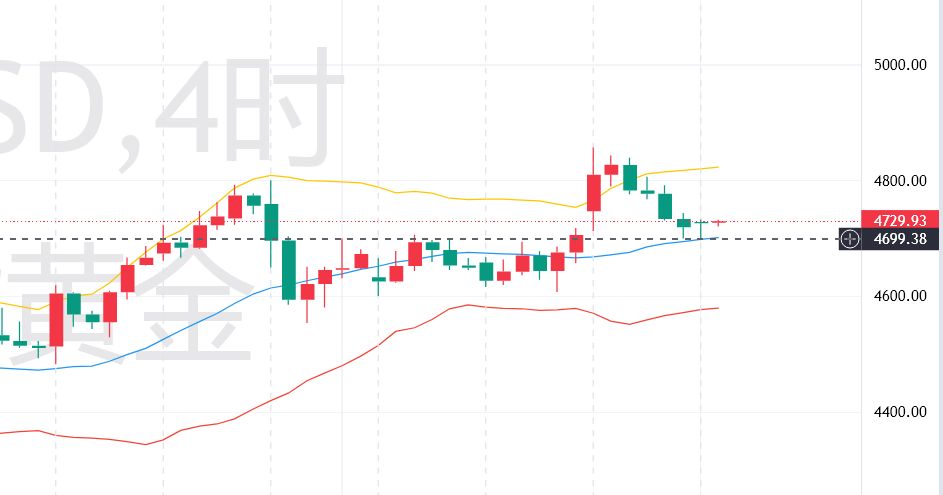 四小时级别来看,从K线形态来看,昨日金价冲高至4850美元附近后,连续收出4根阴线,形成明显的冲高回落走势,该位置形成了明确的顶部压制,后续反弹过程中,目前K线呈现小阴小阳交替排列的态势,多空双方博弈激烈,没有一方能够占据明显优势,金价需回踩下方支撑位确认有效性后,再选择后续运行方向,整体呈现震荡偏空的短期格局,但下方支撑同样强劲,难以出现大幅下行。多头若想扭转当前弱势格局,必须站稳4750美元关键阻力位,且需要成交量持续放大配合,才能打破顶部压制,推动金价进一步反弹,上看4780-4800美元区间;若金价未能突破4750美元阻力,且跌破4690美元关键支撑位,将打开进一步下行空间,下探4650美元附近,甚至测试4600美元关口。