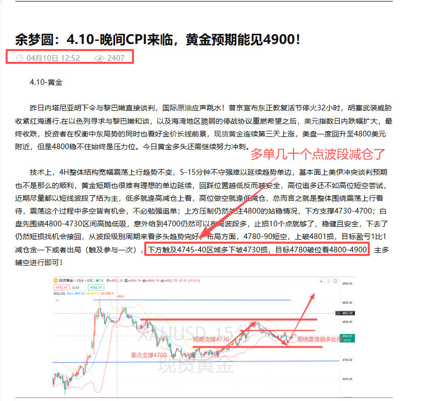 4.9-黄金4710波段多90个点尾仓到达4800拿下;