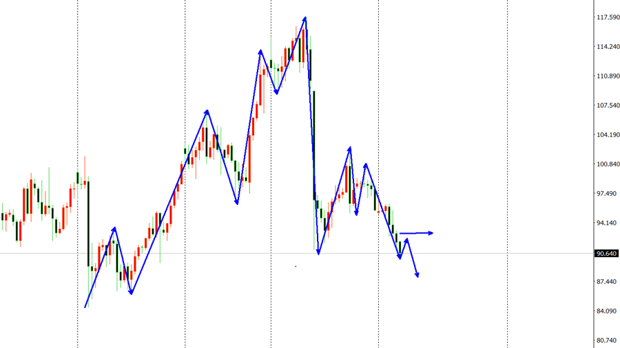 美原油市场昨日早盘受到基本面影响高开在104.93美元/桶,后行情小幅拉升给出105.65的日线高点后行情强势回落,日线最低给到了96.99美元/桶,后尾盘拉升,日线最终收线在了97.97美元/桶,后日线以一根上下影线等长的大阴线收线,而这样的形态收尾后,原油处于震荡承压中。综合来看,高博景总结:原油处于二次承压中,关注下方破位情况,今日操作上考虑反弹做空为先,低多需等待,上方关注93.6-96.3美元阻力,下方关注89.3-86.5美元支撑。