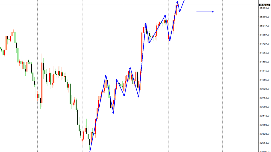 纳指市场昨日低开在24818.29美元,后行情先回落,日线最低给到了24751.57美元,后行情强势震荡拉升,日线最高触及到了25416.6美元,后日线以一根下影线稍长的光头大阳线收线,而这样的形态收尾后,纳指持续维持在多头趋势中。综合来看,高博景总结:纳指震荡之后再次上破,多头动能维持较好,今日操作上考虑回撤布局多单为先,高空为辅,上方关注25550-25700美元阻力,下方关注25250-25150美元支撑。