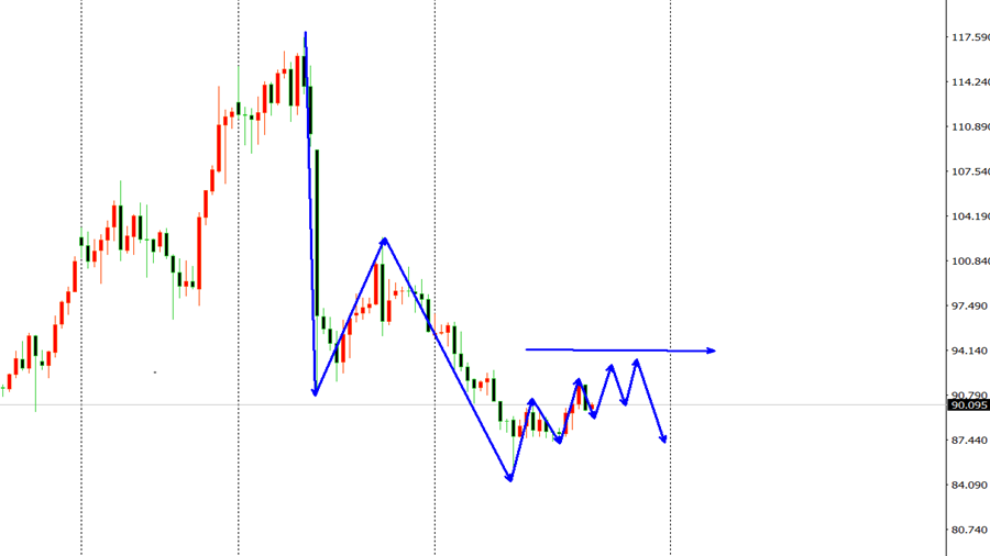 美原油市场昨日开盘在91.23美元/桶,后行情先回落给出90.4美元/桶,后行情拉升,日线最高触及到了94.95美元/桶,后整理,日线最终收线在了97.78美元/桶,后日线以一根上影线很长的中阳线收线,而这样的形态收尾后,日线搓揉形态,多空焦灼中。综合来看,高博景总结:原油在一波大回撤之后,在低位运行一个区间调整,上方阻力位依旧形成打压,今日操作上考虑高空低多策略,上方关注92.5-96.3美元阻力,下方关注88.2-84.4美元支撑。