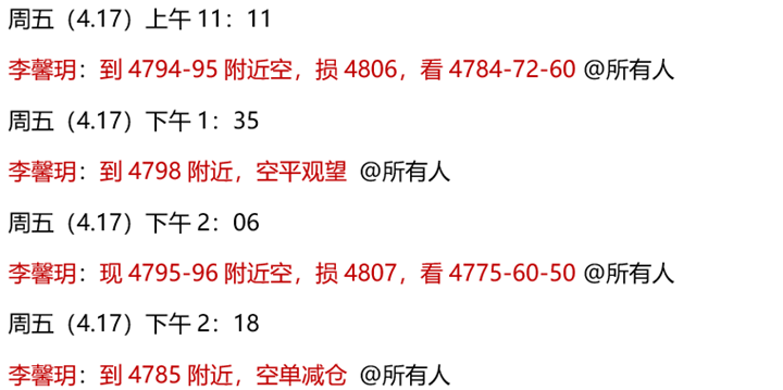 4.14 周二,公开策略黄金回踩4750多,同时关注4790-4800压力,多空全部精准预判,全网见证!实盘中,欧盘前安排了黄金4794-96空单,顺利到4755-52目标止盈,快准狠,斩获43点利润!但由于下探回升非常快,实际多单来不及上车!盘中跟大家反复强调,当前震荡要有耐心,我们做一单赚的就顶别人做一天!