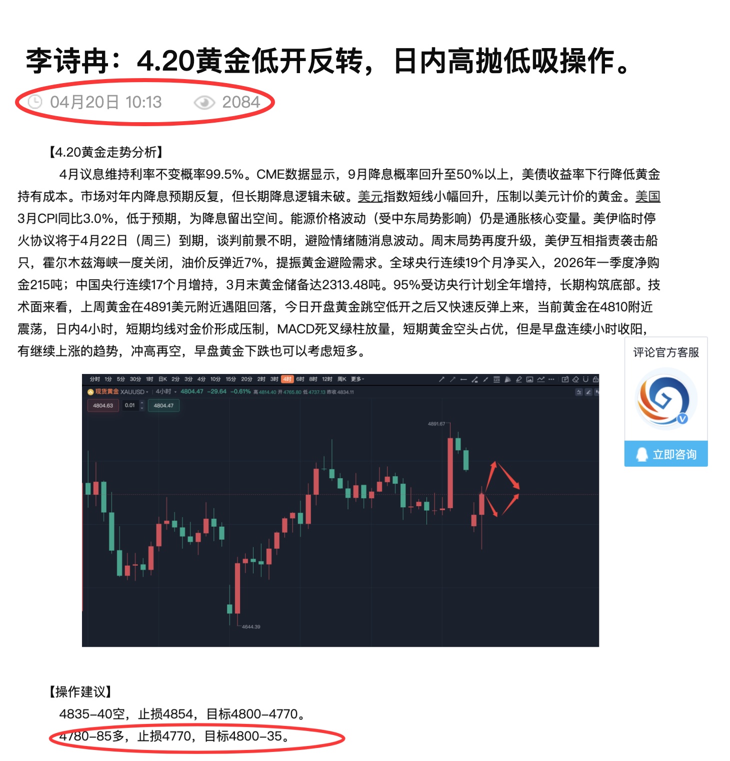 【4.21黄金走势分析】