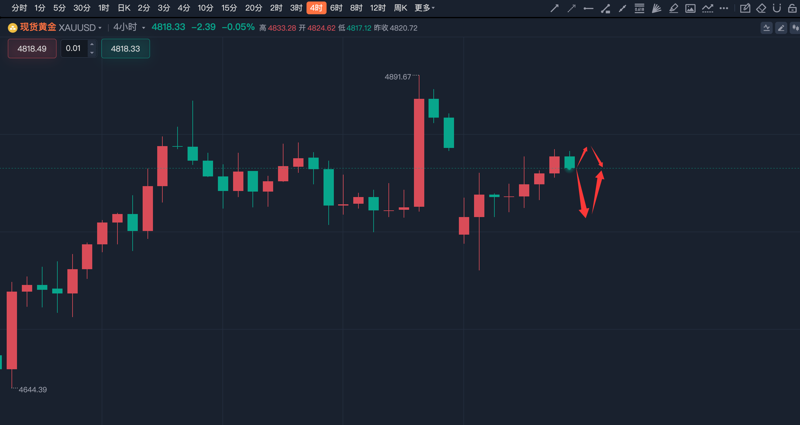 4835-40空,止损4855,目标4810-4790。