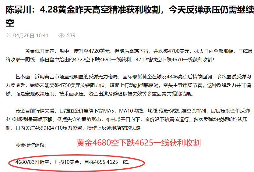 黄金早间做空如期大跌获利,4680空下跌4625一线目标位置止盈收割,拿下550点利润,不要问能不能,行不行,一问就是错过最好最合适的稳赚行情。专业且最负责任的佳航团队在为你铺路,找到我们并加入,下一个资金账户增值甚至几何倍翻的就是你!