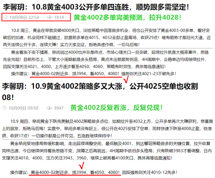 李槿:10/9黄金日内开启连胜模式!4055空全线飘红!