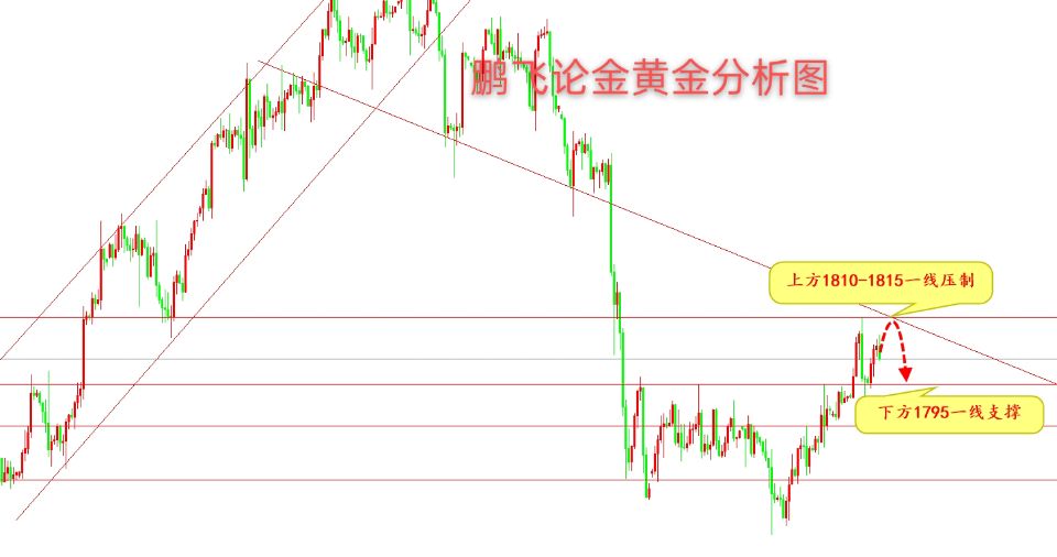 黄金午夜操作策略:反弹1812-1815一线不破做空,止损1821,目标1800-1797一线;