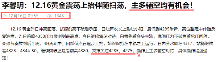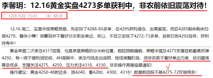 秦霜涵:12.13黄金今日震荡先行拿利,破位后顺势跟进布局!