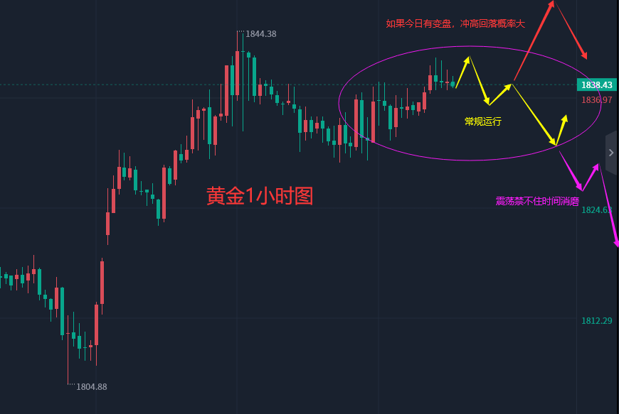 ③日内下方再度回撤1832-30附近时,激进可再尝试一次短多,仅限今日首次回撤至此时尝试,严格设止损1827,目标看1835/36附近即先减仓改保本止损。多单短期风险逐渐增加,保守者尽量不考虑参与。