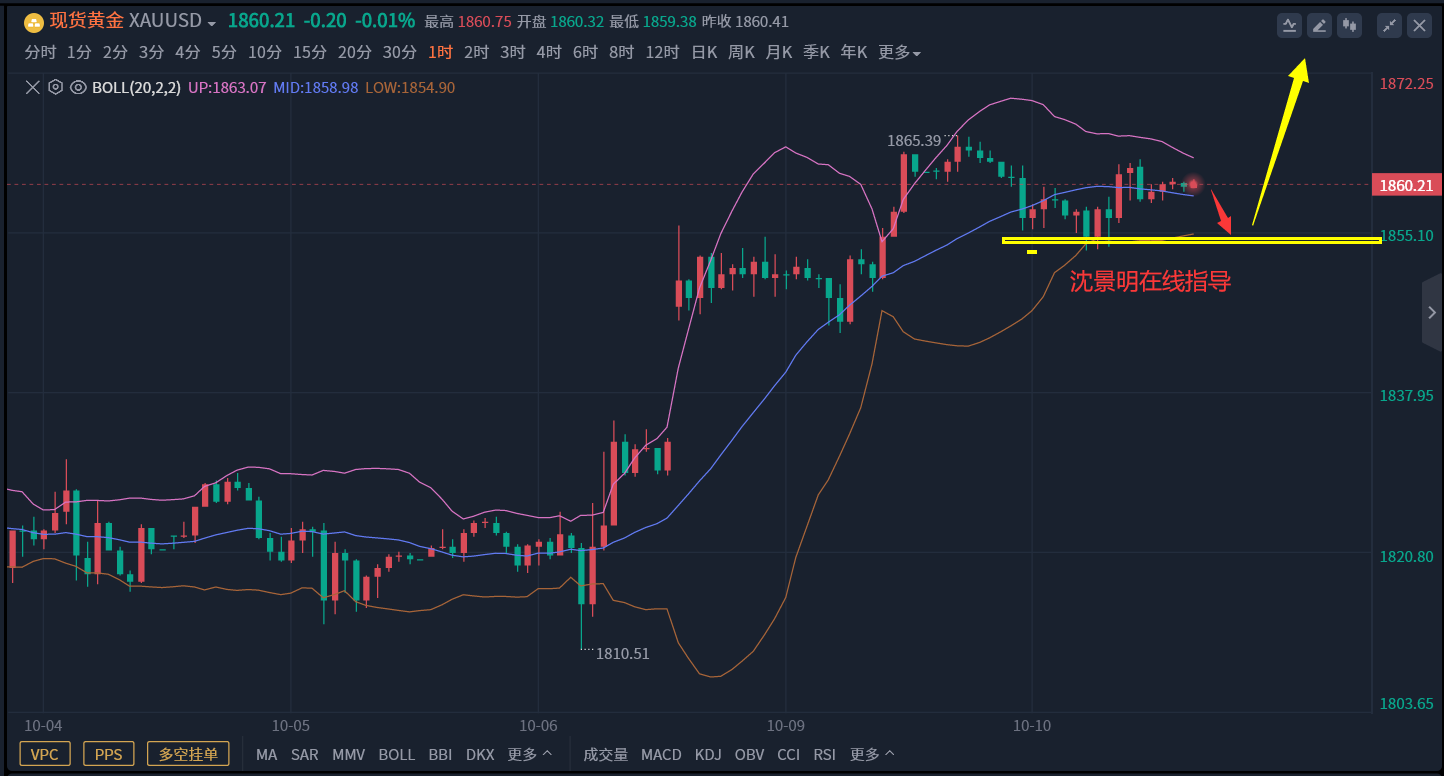 昨日周二,笔者提及,无论是4小时、还是小时线,多头都明显占优。金价站稳均线、KD指标金叉上行,并建议在1855附近再次做多,收获良多。